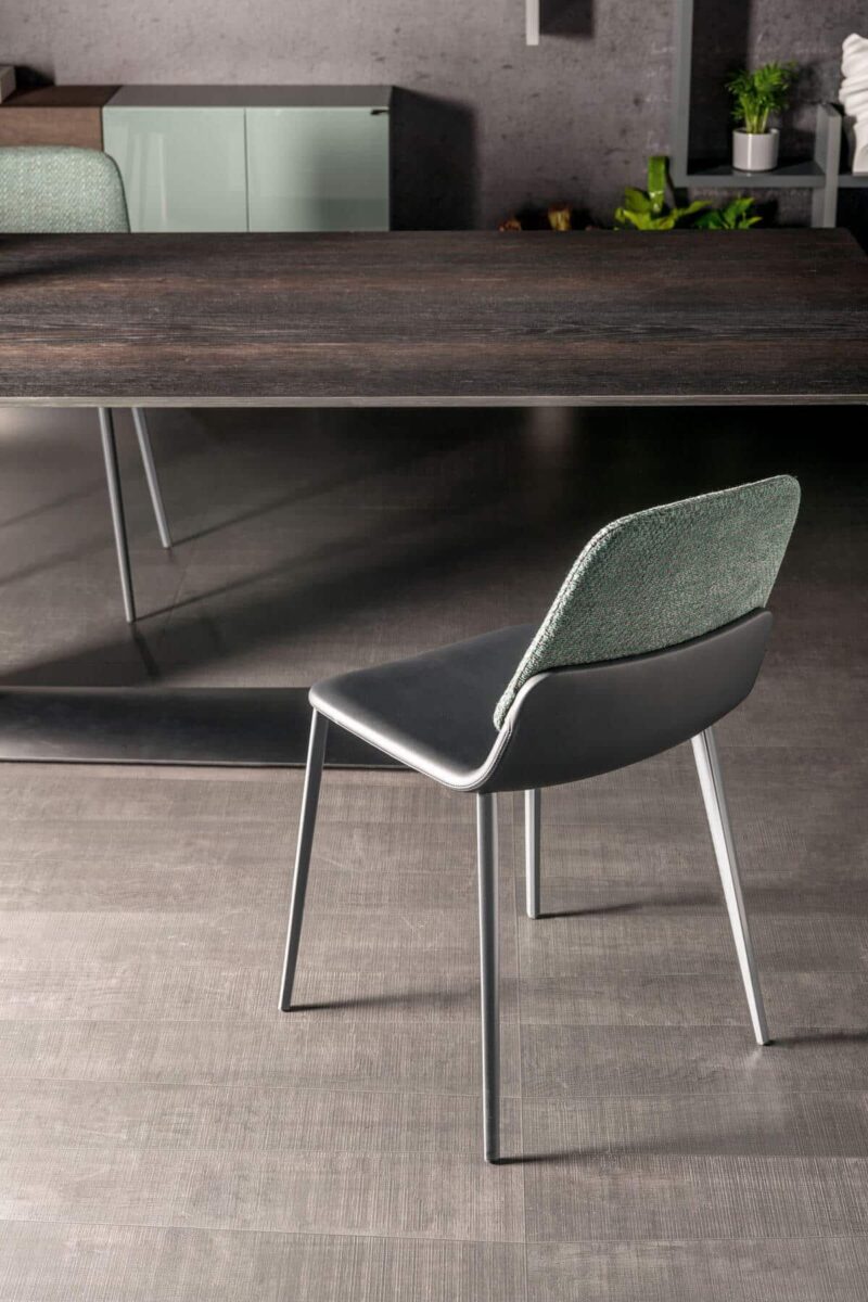 The sinuous Ermes chair can express an infinity of styles, combining the fabrics and