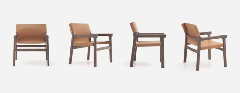 Italian craftsmanship fuses with Japanese style in an armchair deeply infused with references and tactile experiences. A new complement is added to the Fushimi collection. A tale of expectations derives from the tangential relationship between the joints. Leather wraps around wood, renewing an ancient collaboration: evocation of new relationships between material and colour. A reinterpretation of the Fushimi bed, the Fushimi lounge armchair builds on the dominating features of its own inspiration, starting with how the luxurious solid wood is machined and finished. Designed with simplicity, naturalness and proportion, the Fushimi Lounge chair has a wooden structure that is both concealed and exposed in symbiosis with the main leather section whose meticulous craftsmanship is utterly inviting. Available in solid walnut or ash in the Rovere Naturale, Borgogna and Canaletto shades or Open-pore Nero, natural hard leather in the Hermes, Moro and Nero colours.