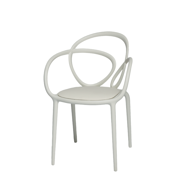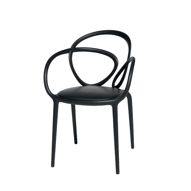 Loop is a chair designed by Front as a visual tangle. With a looped motif back, featuring a single line that wraps around itself, materializing the movement of the pencil in the space, Loop chair comes in a set of two, it’s upholstered with cushions and it’s suitable for indoor use only.