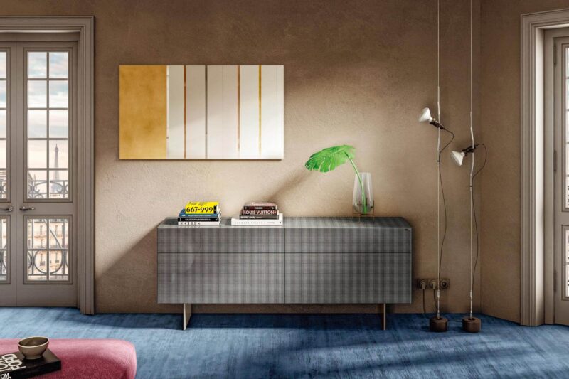 The Materia collection generates practical monolithic storage units for the bedroom, rendered unique thanks to the characteristics of natural materials such as wood, marble, metal and fabric printed on glass. Suspended on the wall or standing on metal supports with a titano steel or peltro steel finish, Materia chest of drawers and bedside tables are an original, lightweight functional solution that is perfect for any kind of bedroom.