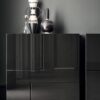 Shapes and surfaces pared back for the ultimate clean look, sharply squared corners and supreme functionality are the distinguishing traits of the Quadra sideboard, whose stand-out feature is the pattern of expertly crafted finger grips on the doors carved out of the solid wood.