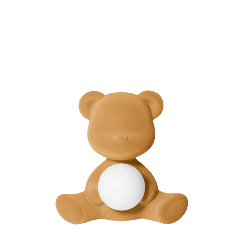 Designed by Stefano Giovannoni in the looking of a traditional Teddy Bear, Teddy Girl is a wireless rechargeable table lamp, embracing a small luminous sphere. Timid and delicate, it brings to light the little teddy bear’s tender soul. With its soft velvety surface Teddy Girl is a call for cuteness!