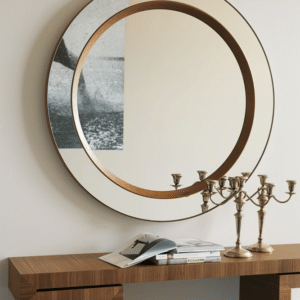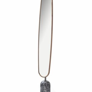 Freestanding mirror with frame in solid canaletta walnut. To be positioned to different slopes. Details in bronzed brass.